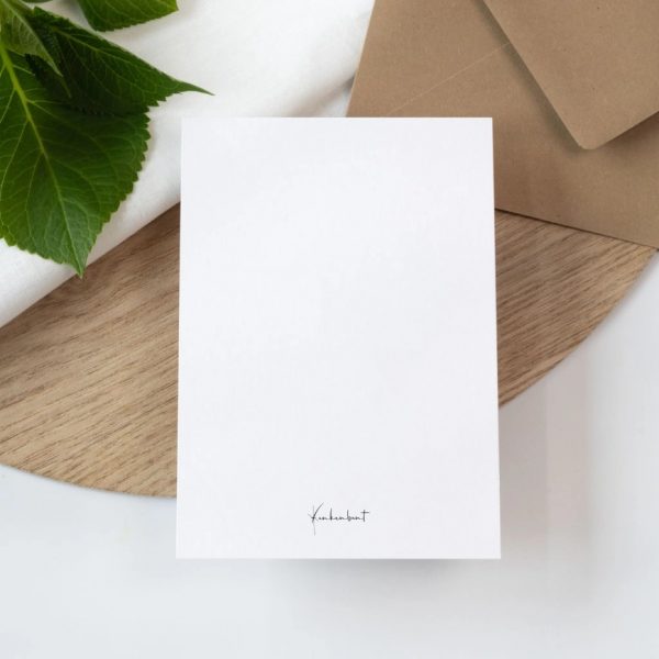 Die Karte besteht aus hochwertigem Karton mit matter, edler Oberfläche sowie feiner Struktur (300 g/m²). Dadurch wirkt sie stabil, elegant und besonders hochwertig. Das Format DIN A6 (105 × 148 mm) im Hochformat passt optimal in das beigelegte, naturfarbene Kraftpapier-Kuvert. Jede Grusskarte „Hase mit Herz“ wird einzeln in einer Cellophanhülle verpackt, sodass sie unbeschädigt bei dir oder der beschenkten Person ankommt. Dadurch erhältst du ein Produkt, das langlebig, stilvoll und hochwertig ist.