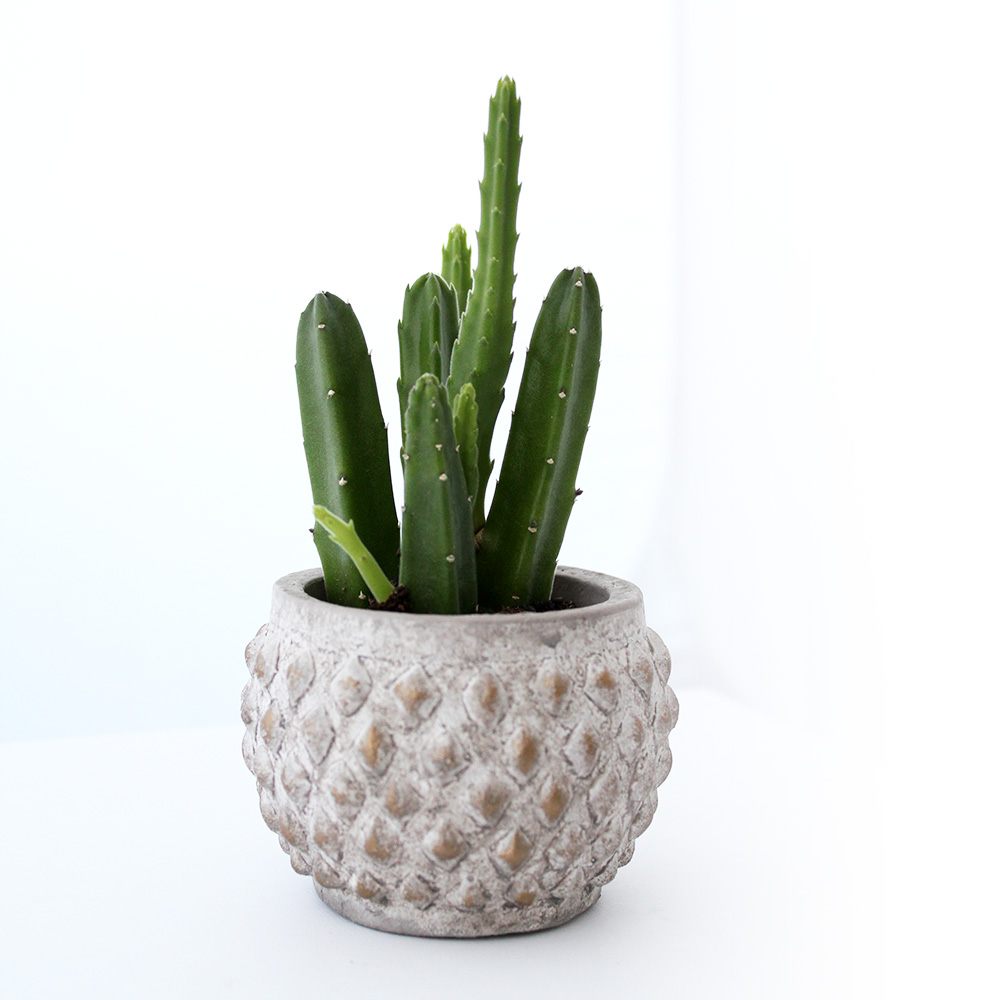 Arrangiert in einem dekorativen Übertopf aus strukturierter Keramik wirkt der Kaktus im Übertopf Firenze besonders edel. Der matte, strukturierte Topf verleiht der robusten Pflanze einen ruhigen, ausgewogenen Rahmen und betont ihre klare, grafische Form. Diese Kombination aus rauer Oberfläche und lebendigem Grün schafft ein harmonisches Gleichgewicht zwischen Natürlichkeit und Design.