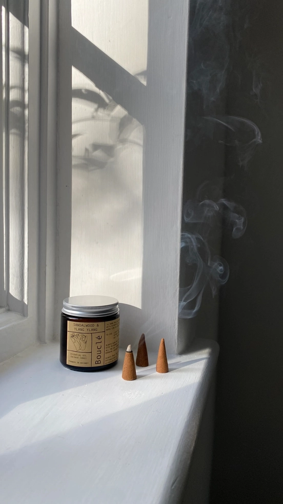Jeder Kegel ist handgerollt und aus natürlichen Inhaltsstoffen gefertigt. Leichte Unterschiede in Farbe und Form betonen die Einzigartigkeit jedes einzelnen Kegels. Das elegante 120-ml-Apotheker-Braunglas von Bouclé schützt die Kegel und sorgt gleichzeitig für eine stilvolle Präsentation.